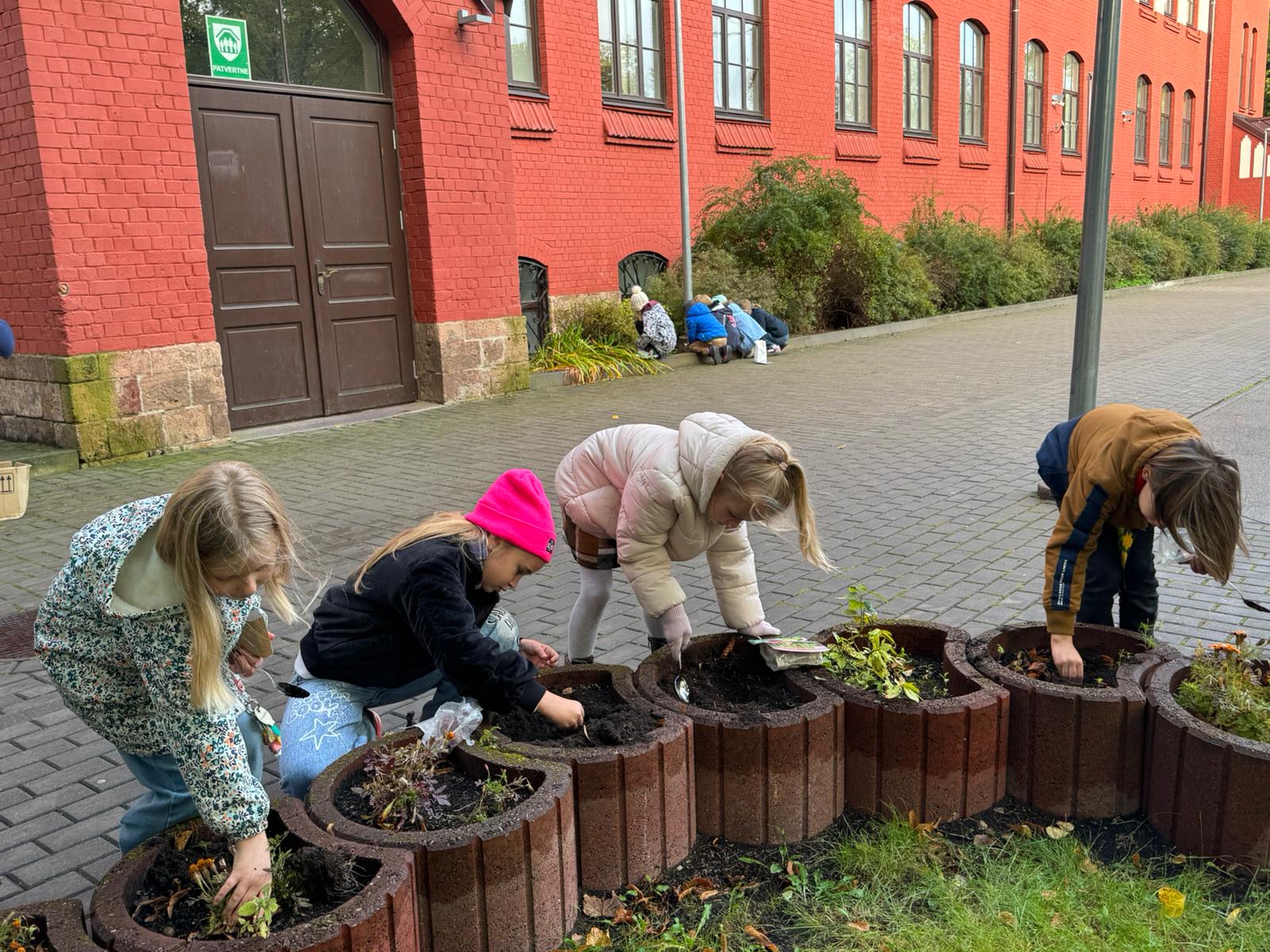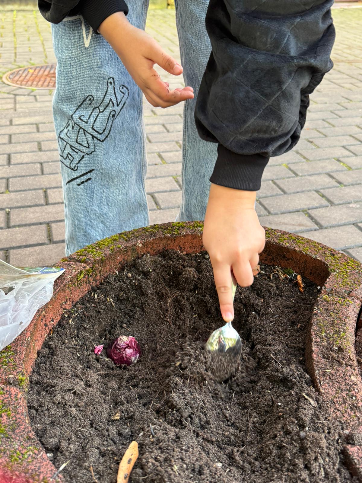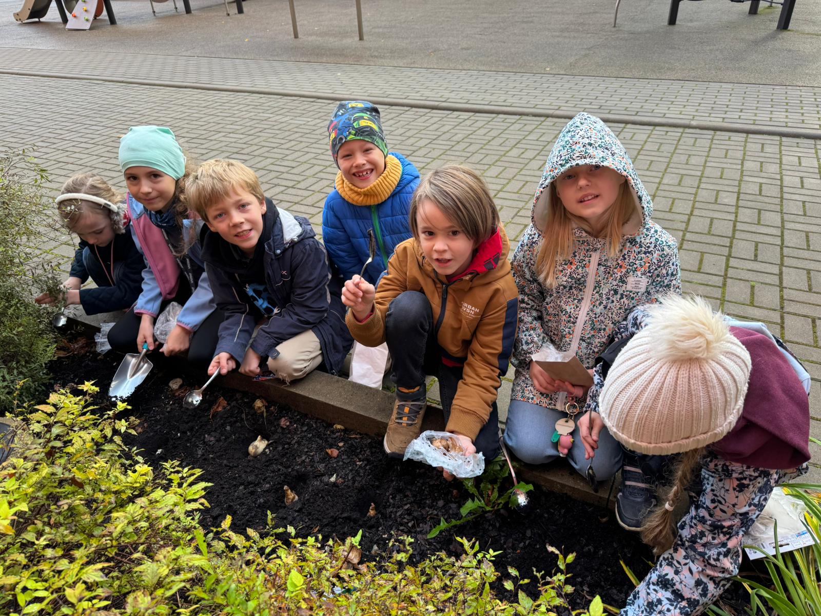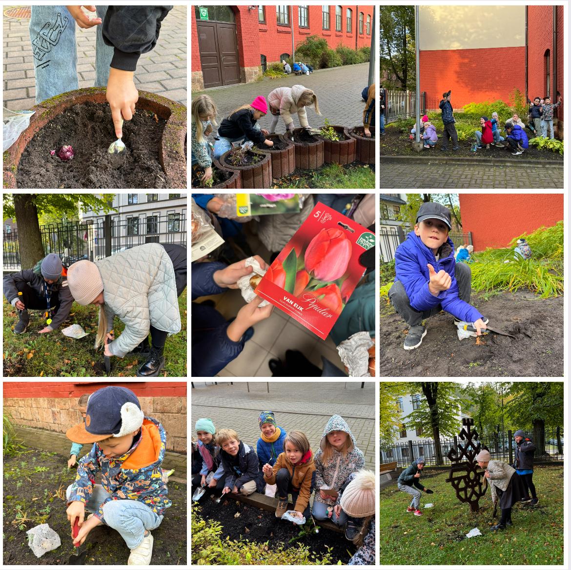 Paldies vecākiem un skolēniem par entuziasmu, pērkot, dēstot. Pie skolas ieejas no Zeļļu ielas puses gaidām pavasara laiku.