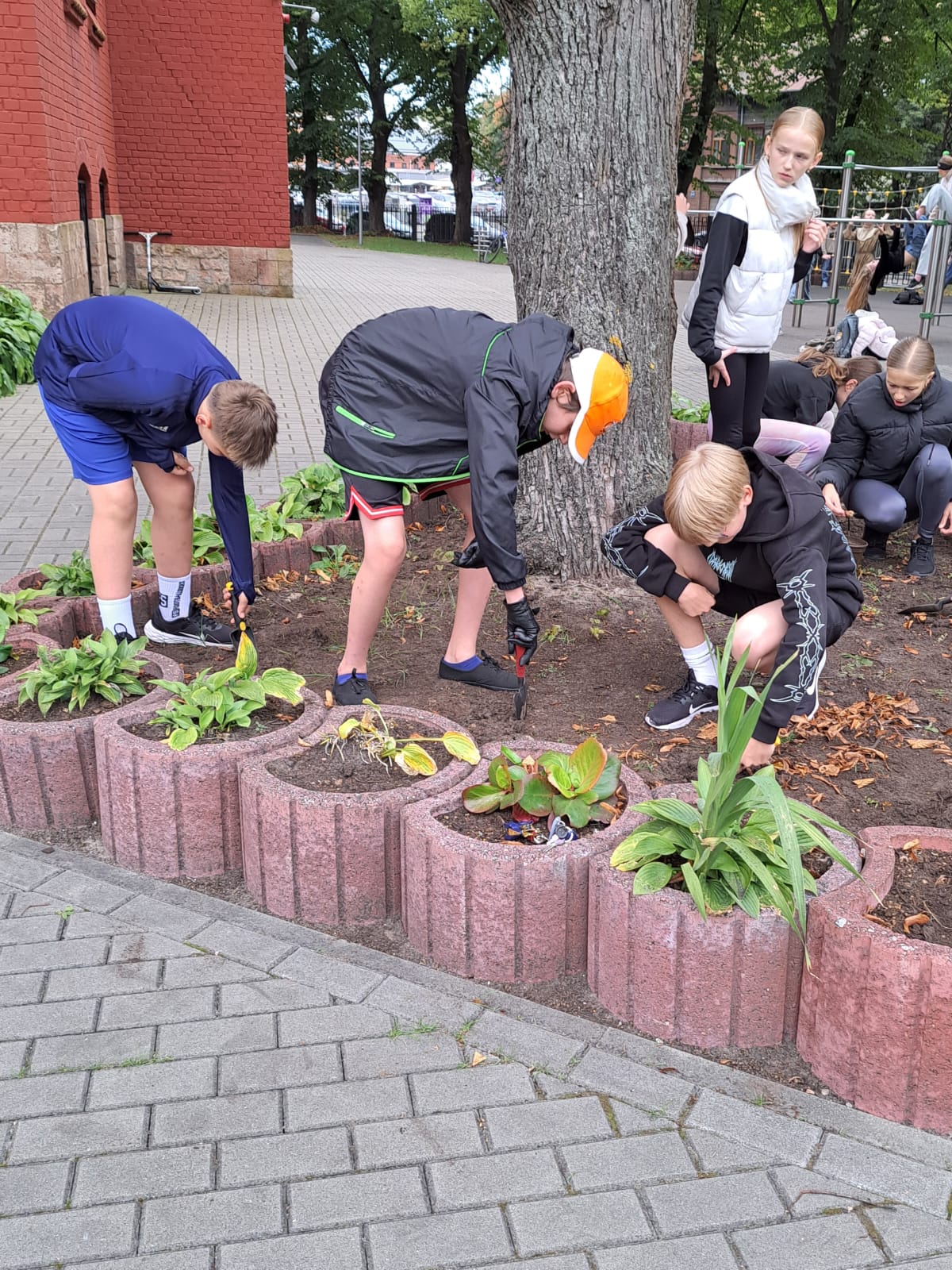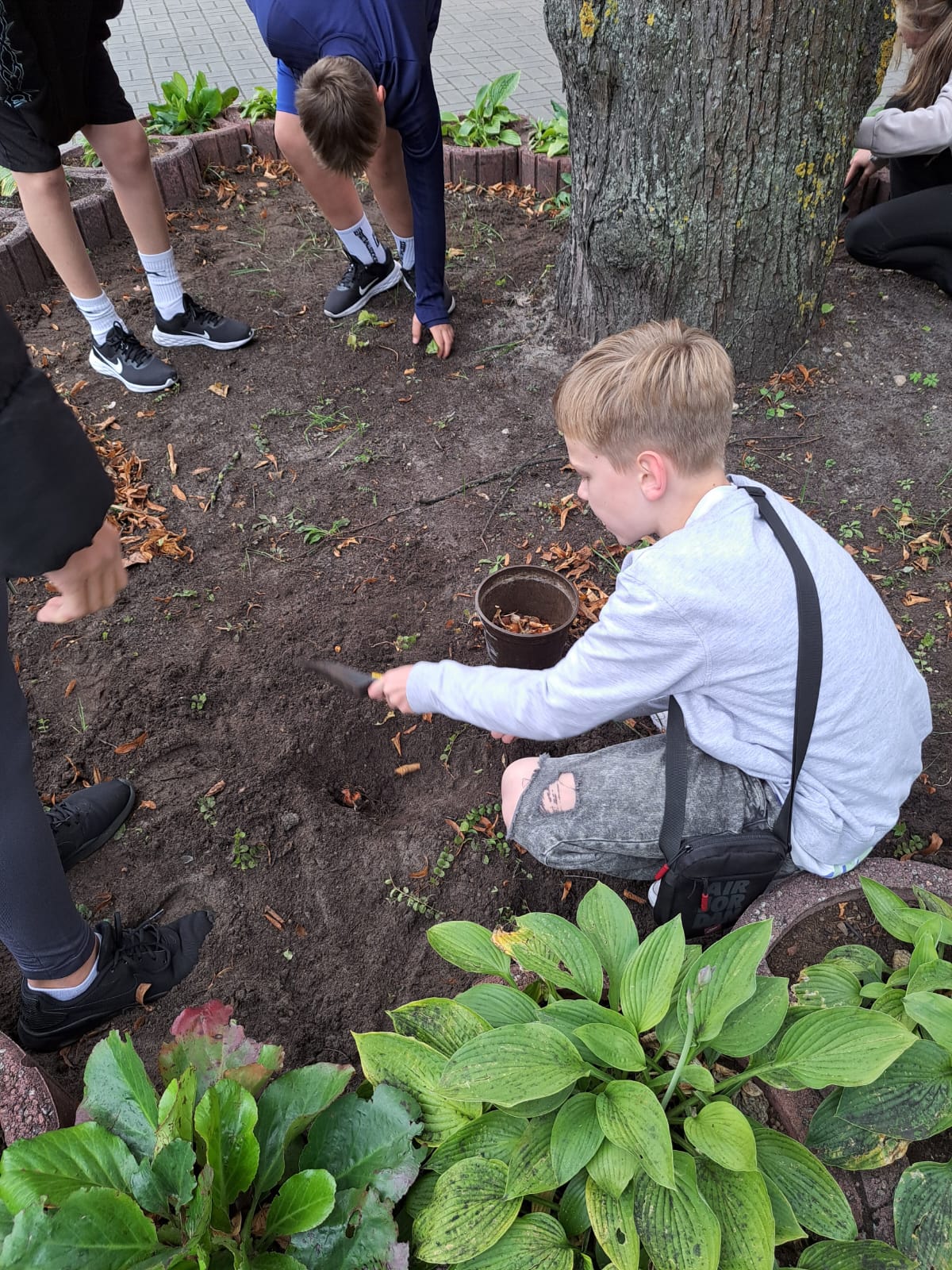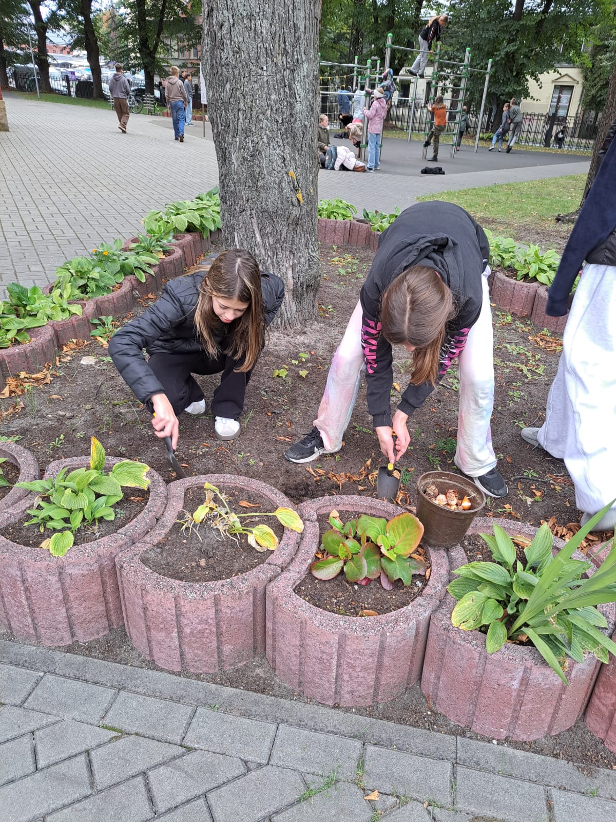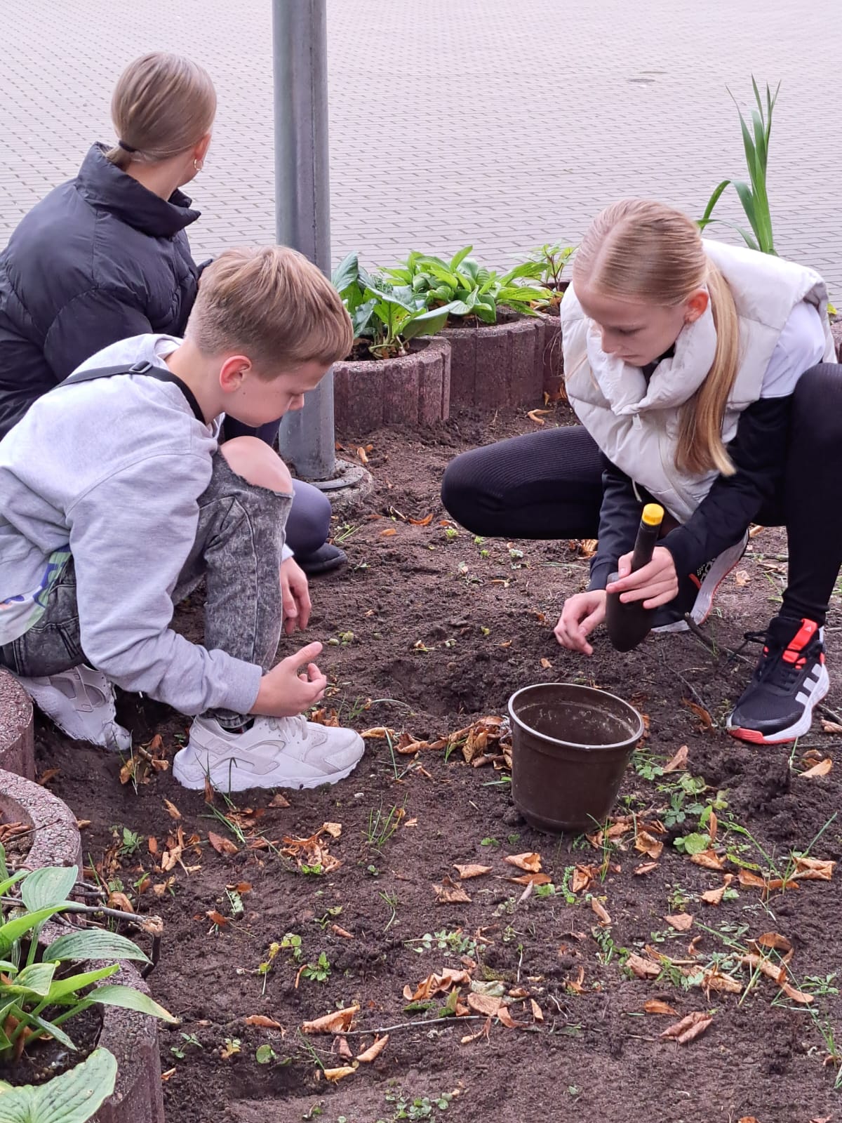 Kā saka skolēni, kopīgiem spēkiem sastādījām tulpju sīpolus pie liepas, kurai apkārt ir puķu podi. Paldies skolēniem par aktivitāti, vecākiem par atbalstu un klases audzinātājai Gitai Brēmanei par iniciatīvu!