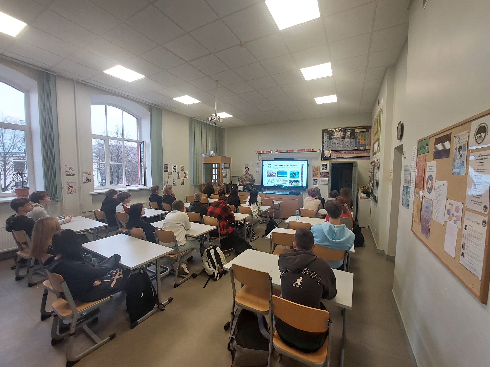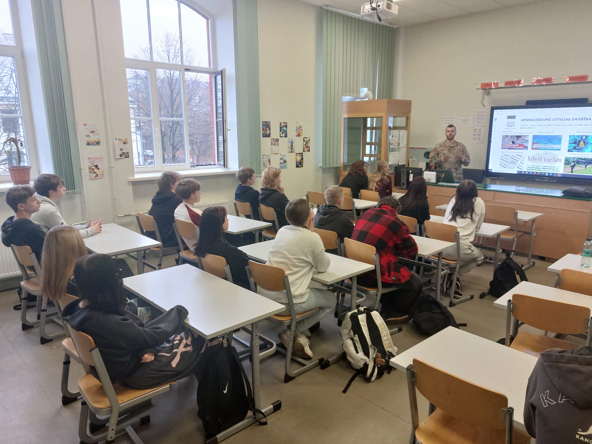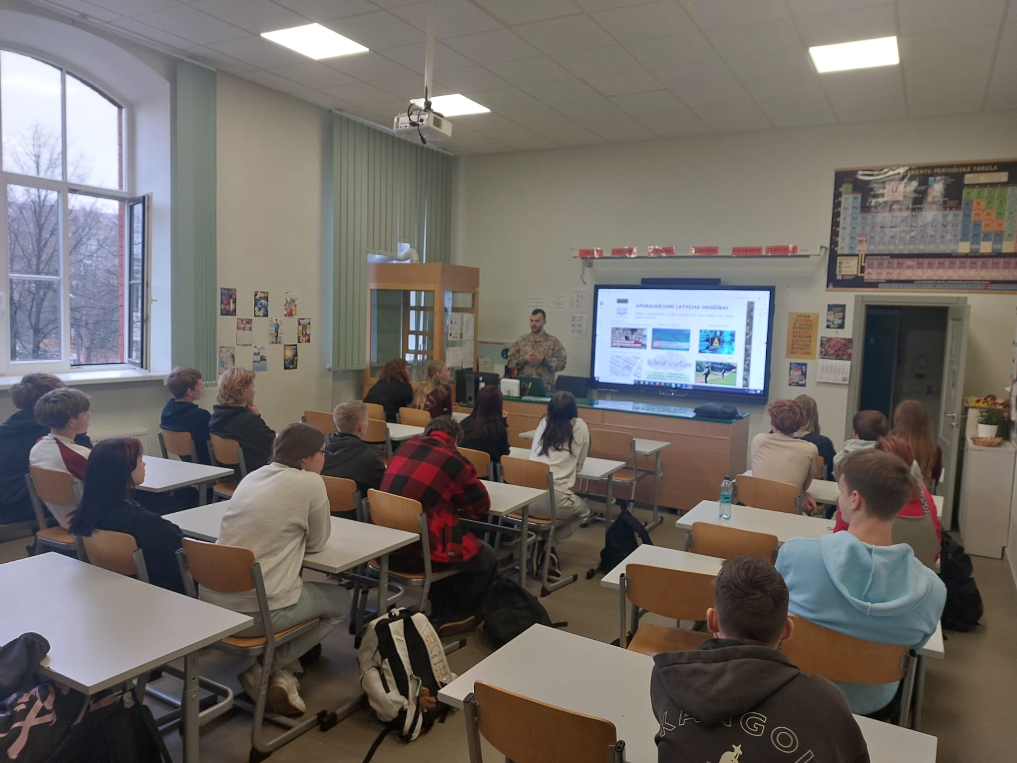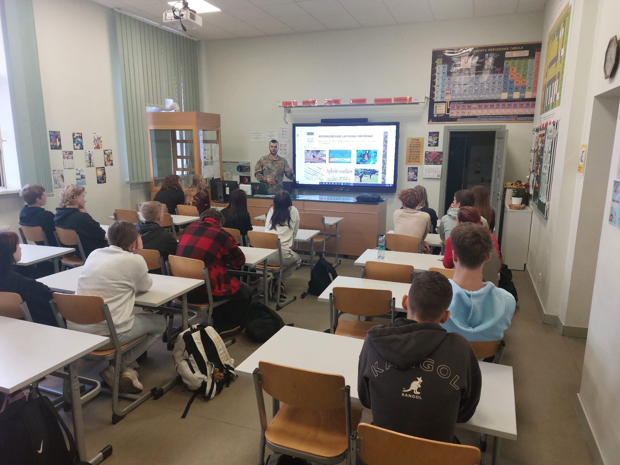 Trešdien, 12. novembrī, Patriotu nedēļas ietvaros pie 9. klases skolēniem viesojās Jaunsardzes centra instruktors ar lekciju "Kā mēs sargājam Latviju?".