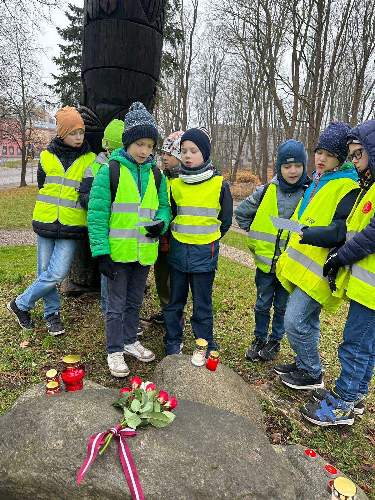 Sestdien, 8. novembrī, 3.b klase izzinājā Brīvzemnieka gara darbus, dziedāja skolas himnu, izteica pateicības un vēlējumus.