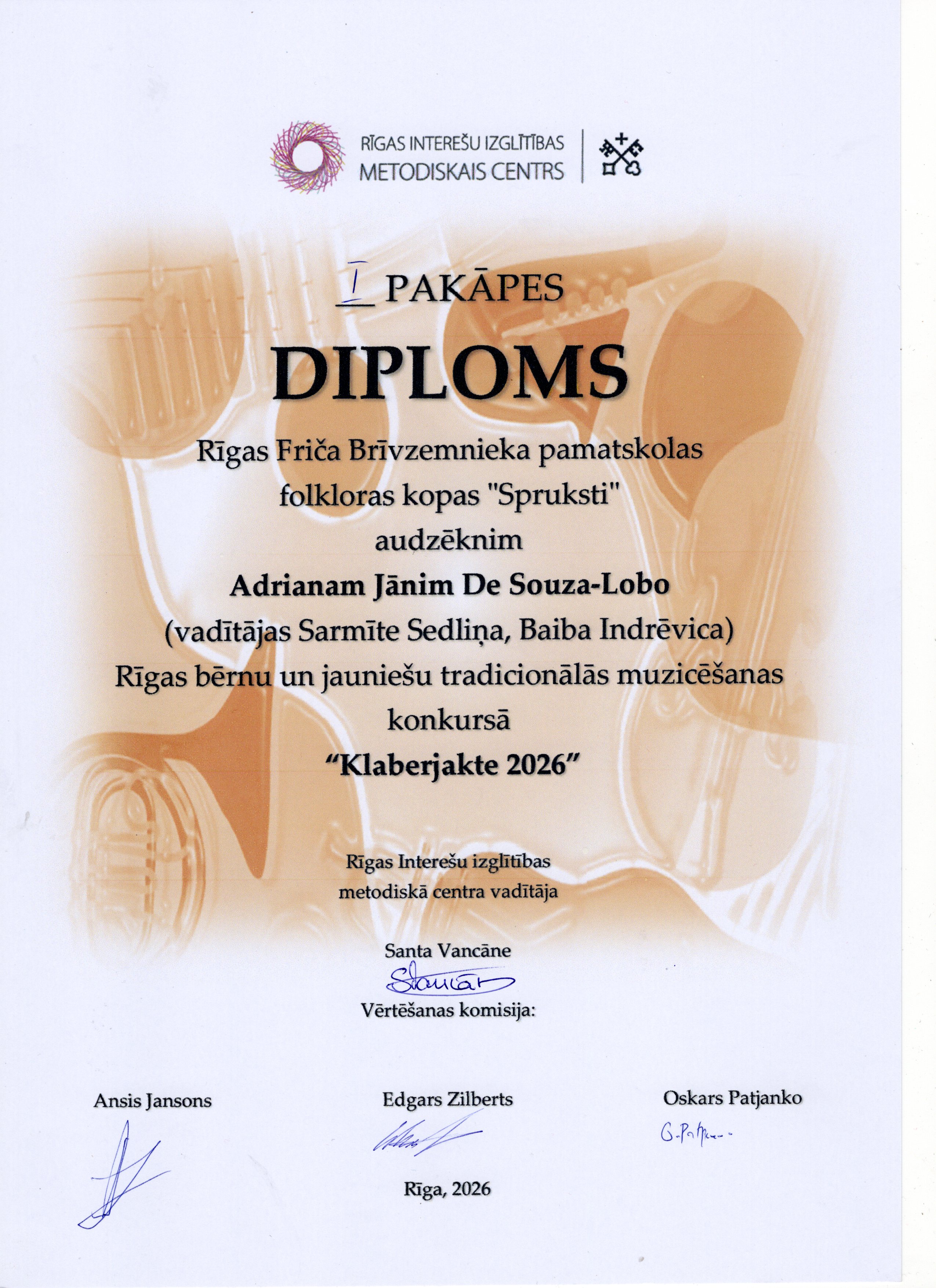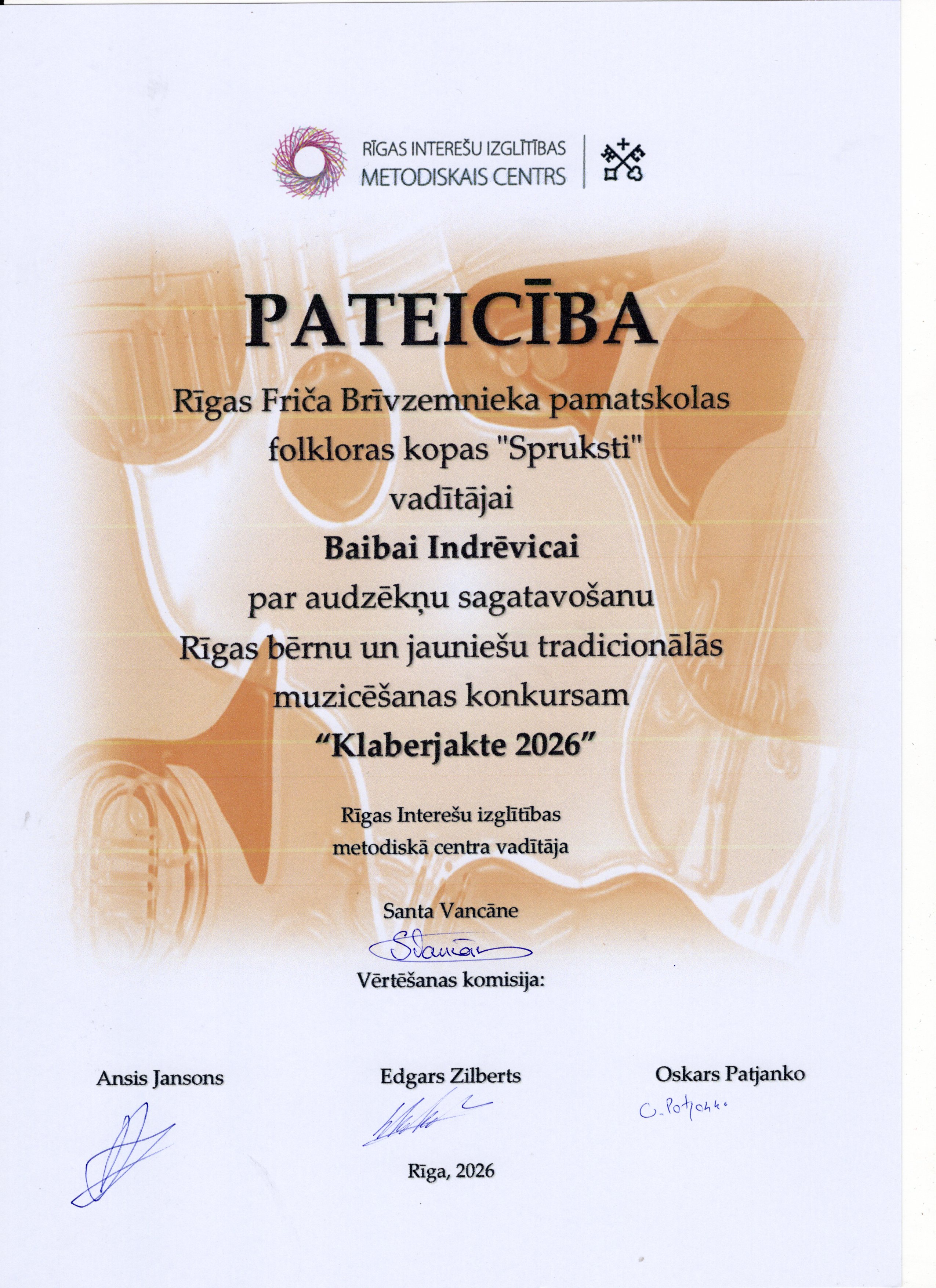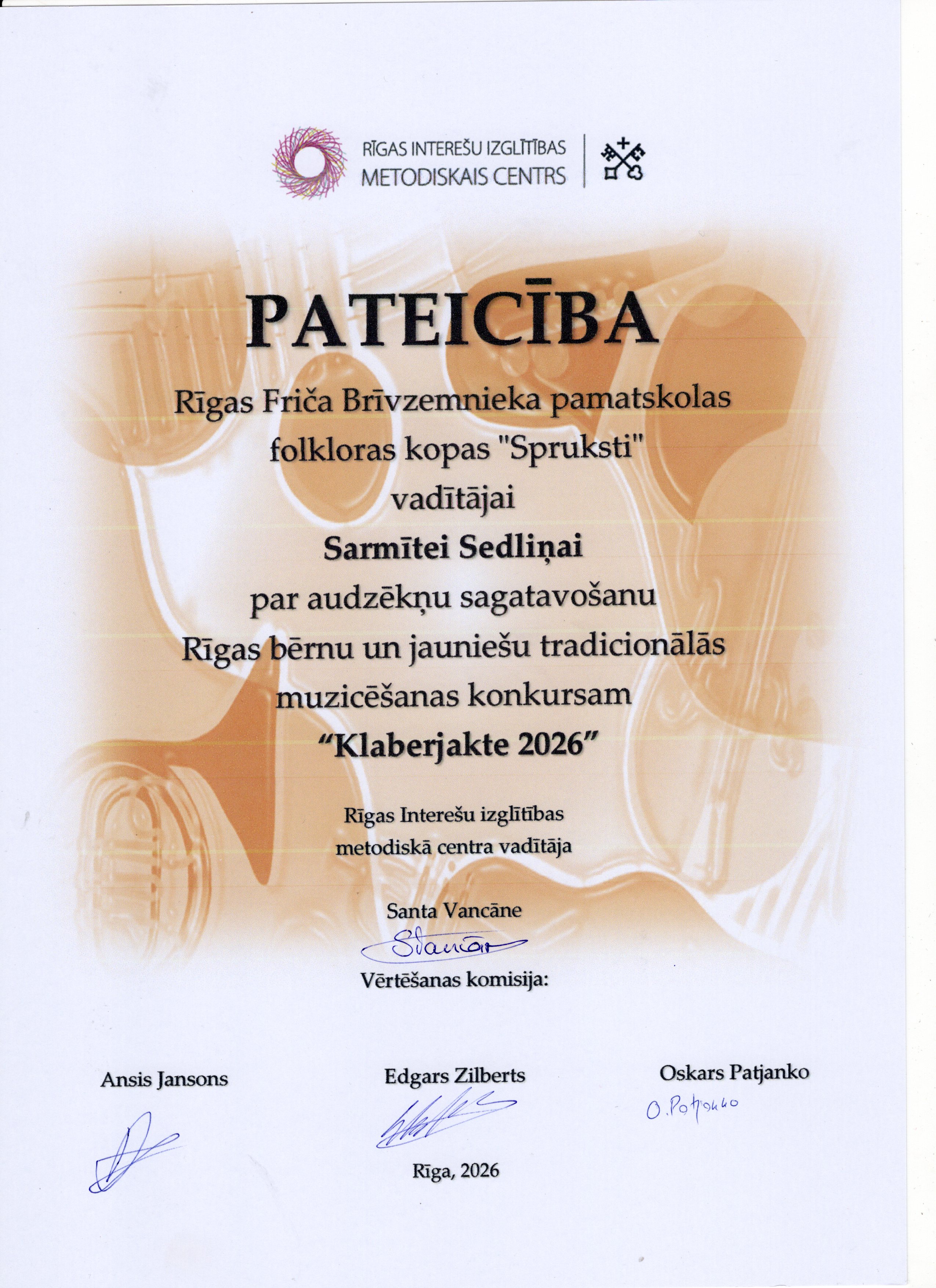Šī gada 12. aprīlī Bērnu un jauniešu centrā “Rīgas Skolēnu pils” satikās Rīgas brašākie muzikanti, lai piedalītos ikgadējā tradicionālās muzicēšanas konkursā “Klaberjakte”. Konkursā varēja dzirdēt gan individuālos solistus, gan arī tautas mūzikas instrumentu kapelu uzstāšanos. Tradicionālajā muzicēšanas konkursā “Klaberjakte” ikviens dalībnieks izpilda divus skaņdarbus, muzicējot individuāli, duetā vai kapelā. Žūrija vērtē priekšnesumu atbilstību tradīcijai, dalībnieku tehnisko sagatavotību, muzicēšanas kvalitāti un kopējo skatuvisko pievilcību. "Spruksti" uzstājās individuāli, Madara Geidāne un Emīlija Švalbe spēlēja kokles, Adriāna Jāņa De Souza-Lobo priekšnesums skanēja uz mutes ermoņikām. Abas meitenes, Adrians un Krišjānis Balodis savu varēšanu parādīja arī muzikantu kapelu grupā un ieguva labu žūrijas vērtējumu un 1.pakāpes diplomu. Visi "Sprukstu" muzikanti pārstāvēs Rīgu konkursa finālā 25.aprīlī.