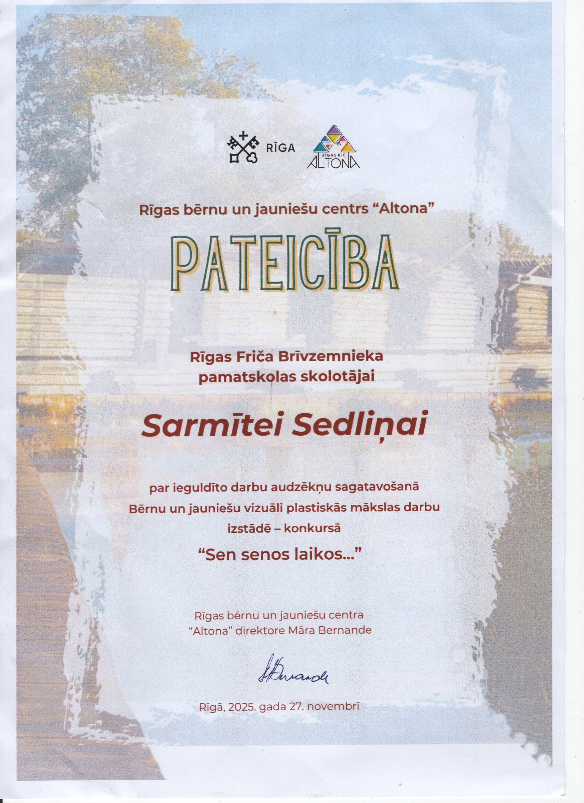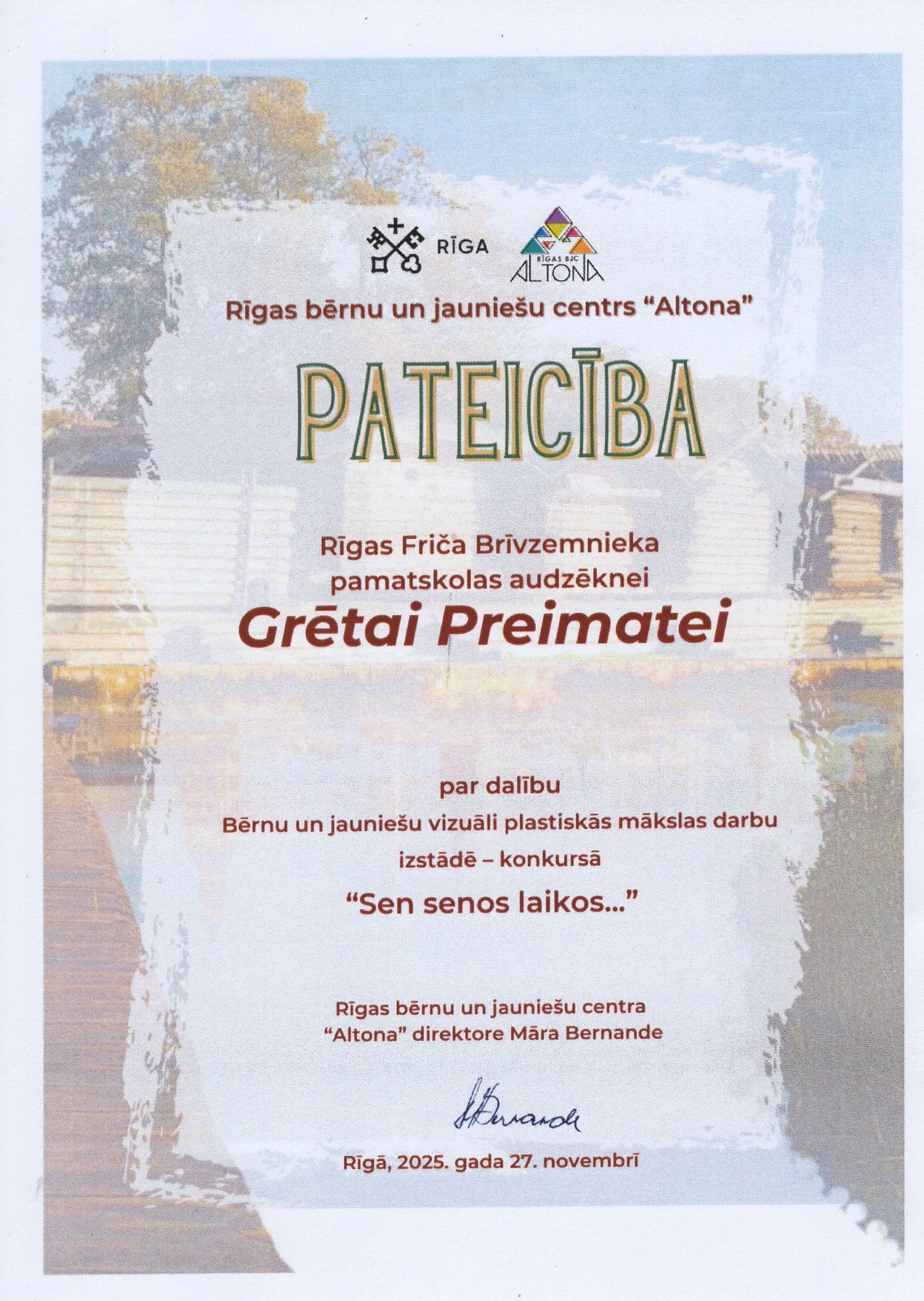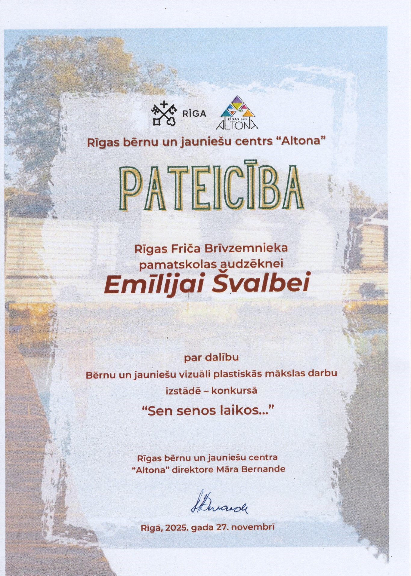 Bērnu un jauniešu centra "Altona" bērnu un jauniešu vizuāli plastiskās mākslas darbu izstādē - konkursā "Sen senos laikos..." aušanas pulciņa '"Dandzis " meitenes un puisis piedalījās ar savu redzējumu par latviešu tautas pasākām Kā balodis ligzdu darīja, Ezis un zaķis un Bailēm lielas acis.
