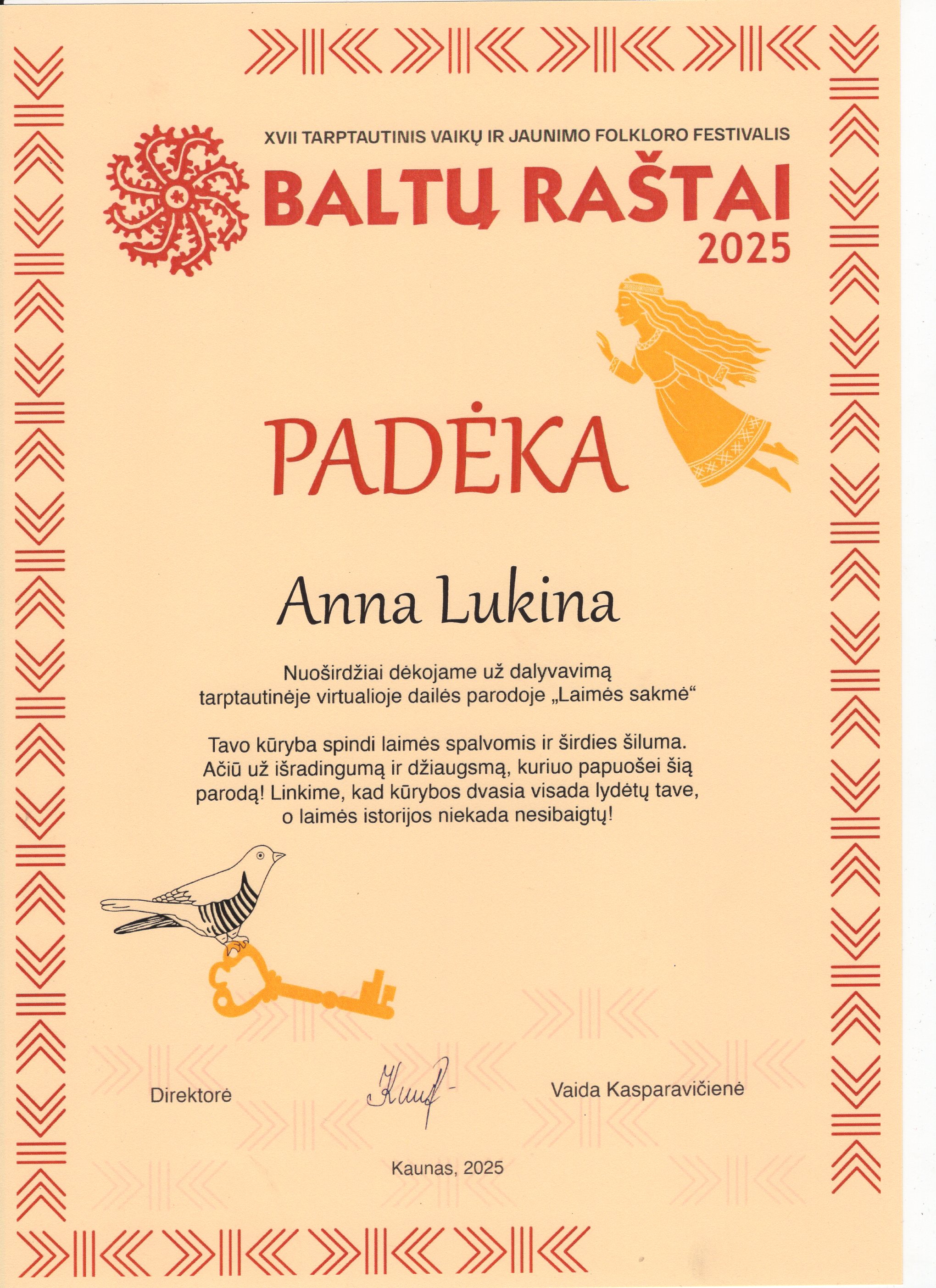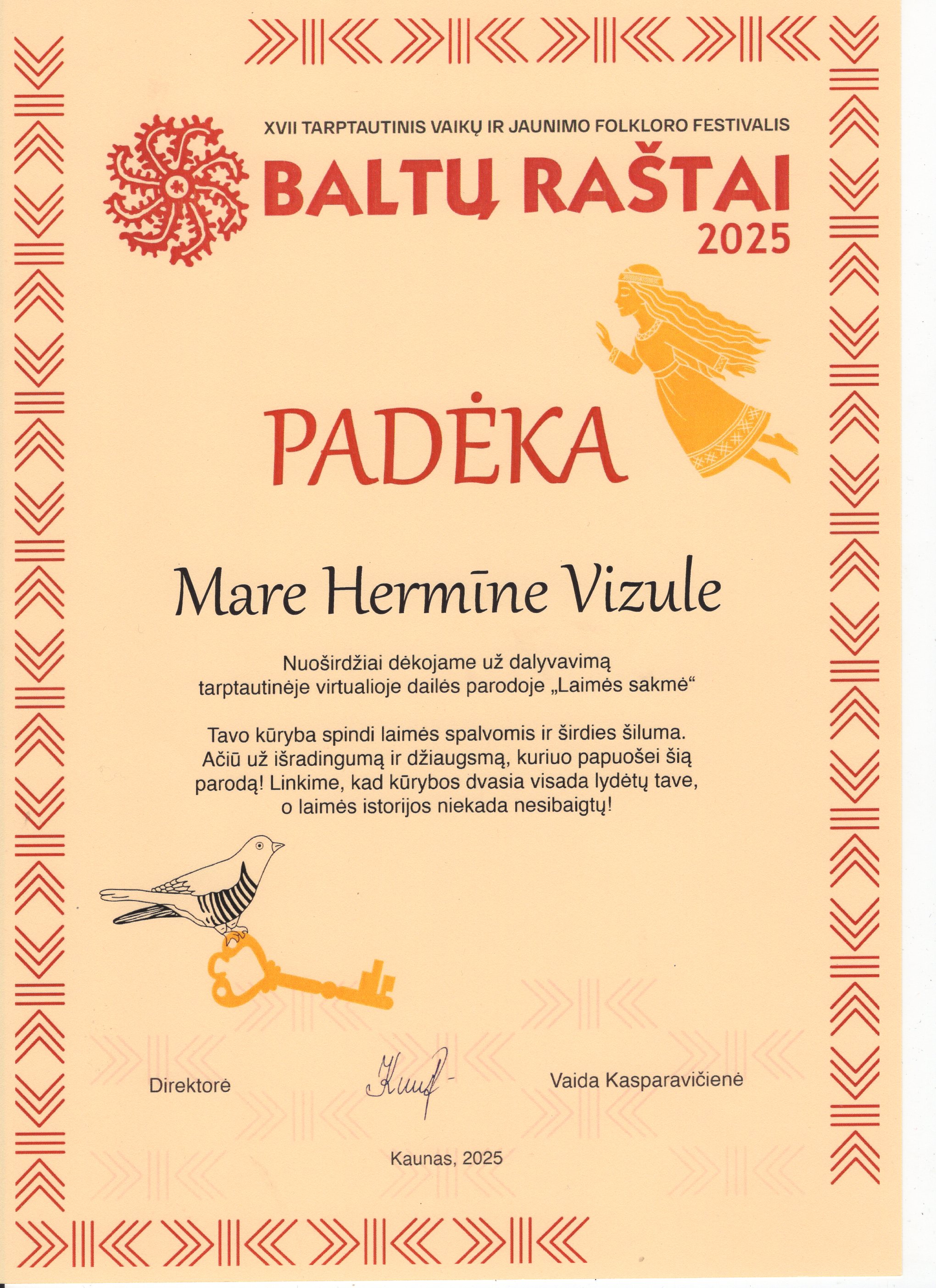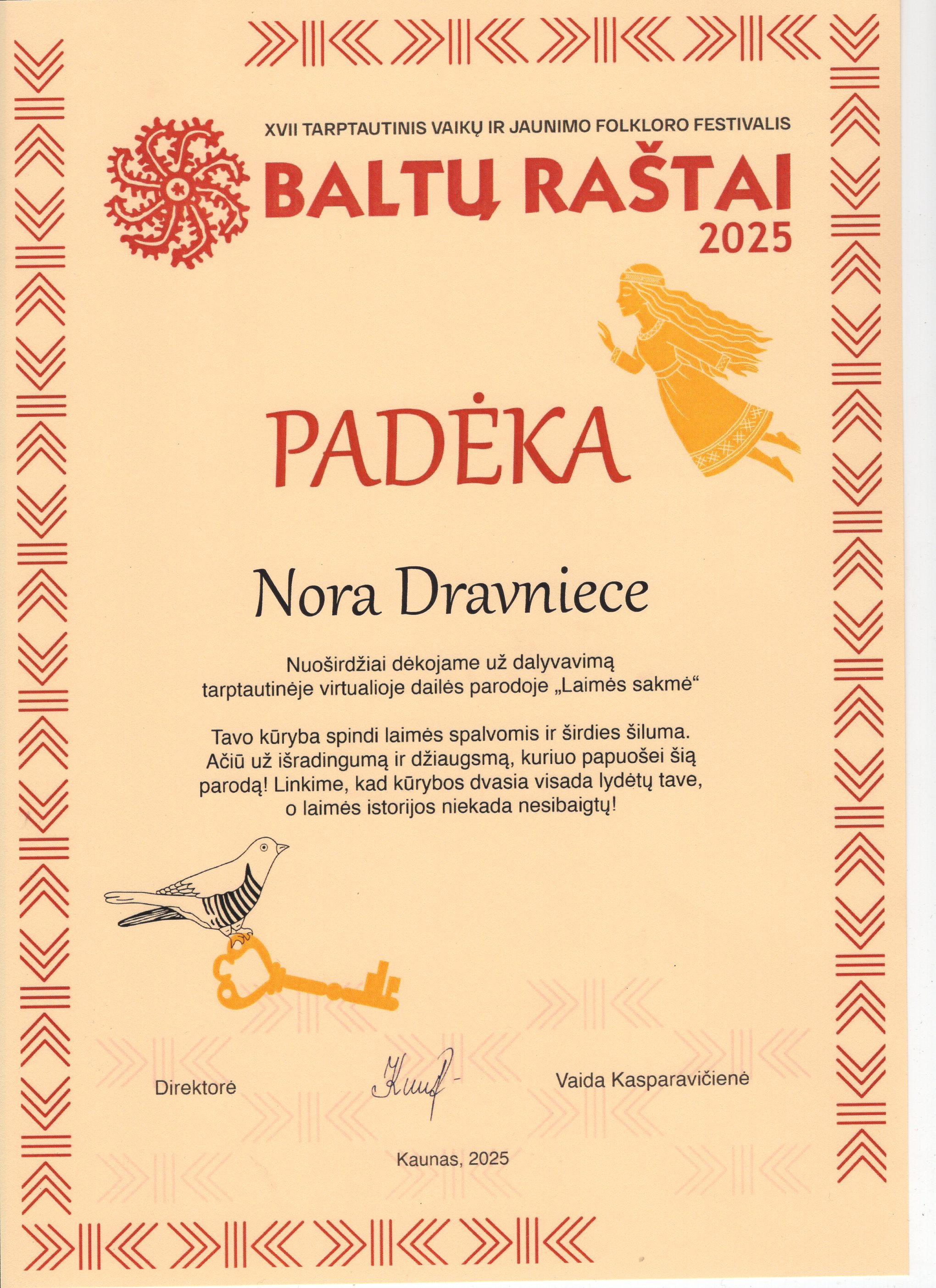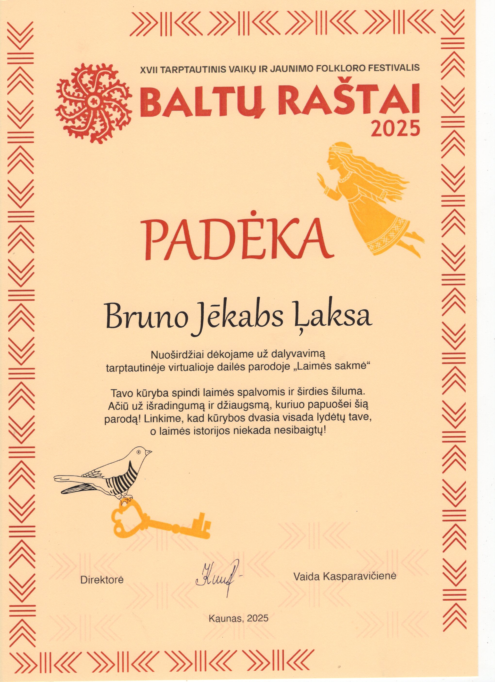 Mūsu skolas skolēni ir piedalījušies Kauņas starptautiskajā vizuālās mākslas izstādē "Laimes stāsts".