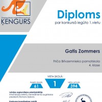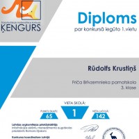 2.a klases skolniece Priedīte Felicita ir ieguvusi 1.vietu skolā un 11.vietu Latvijā savā vecuma grupā (2.klase) no visas Latvijas 3089 konkursa dalībniekiem!
