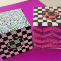 2.a un 2.c klases mākslas novirziena skolēni mācību gada laikā iepazinuši optiskās izlūzijas veidošanas principus un nosacījumus, darba gaitā radot optiskās ilūzijas kubus.