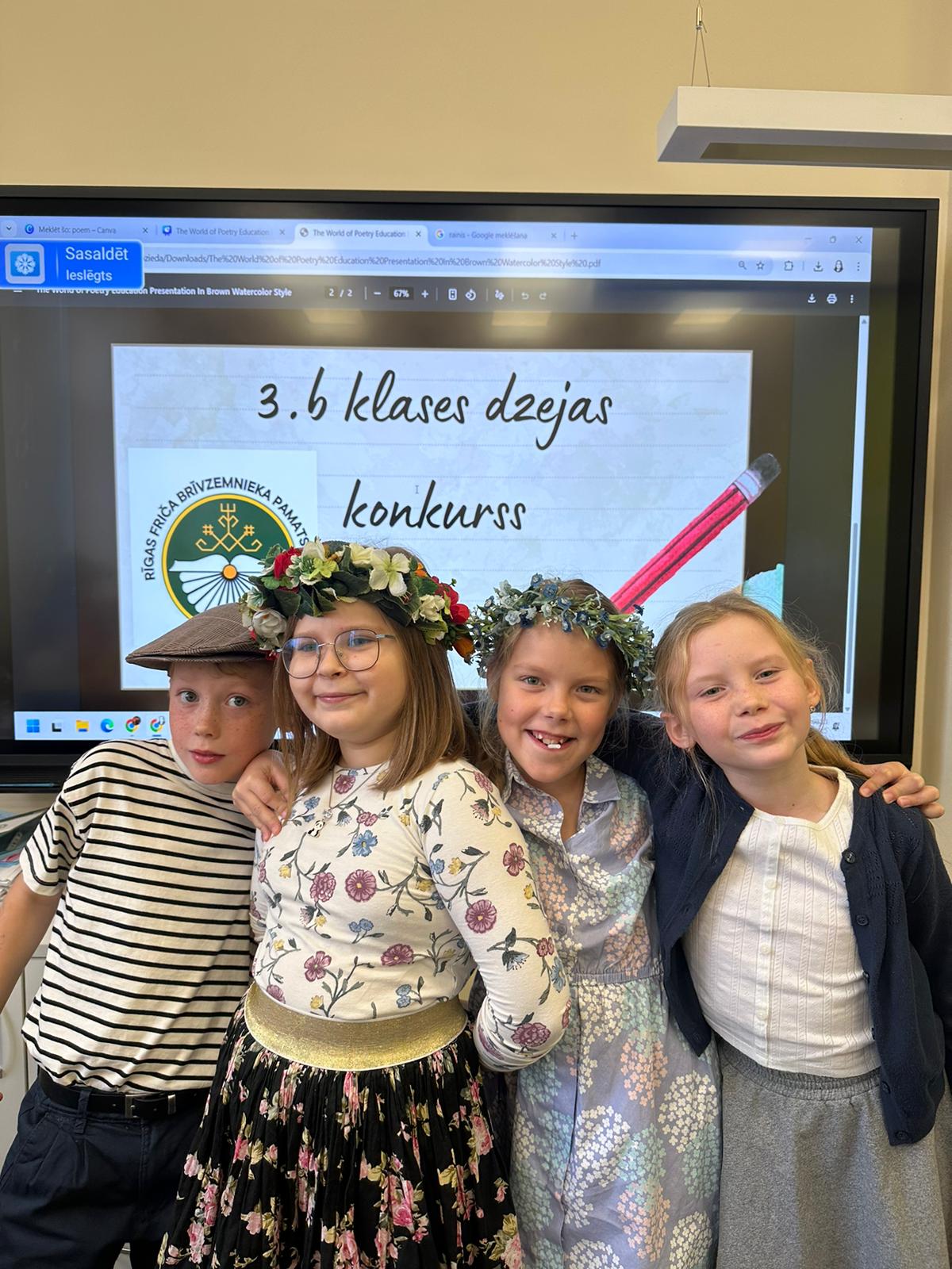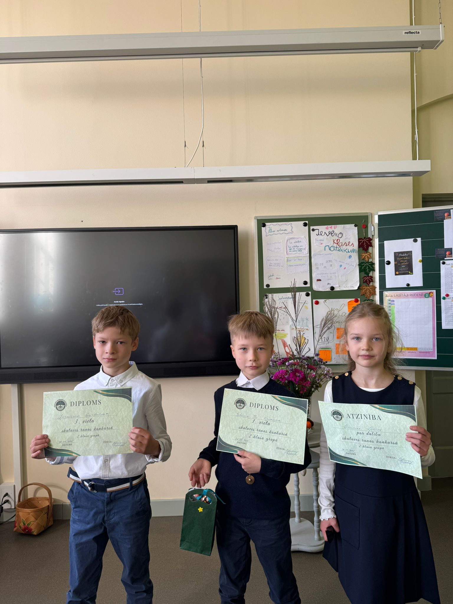 Pateicības ieguva Krišjānis 3.c, Kristaps 3.c, Jasmina Lilija 3.b, Herta 3.a, Nora 3.a un Laura 3.a.
