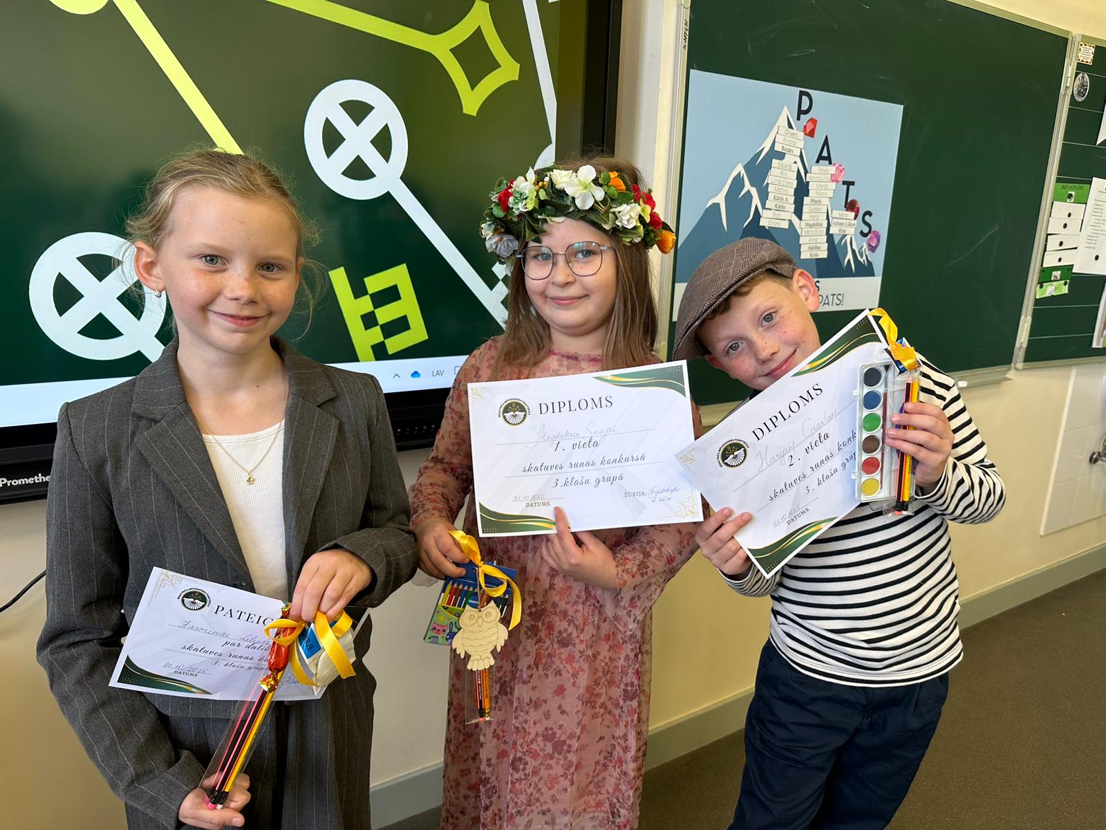 Skatuves runas konkursā pirmo klašu grupā pateicību par dalību ieguva Jēkabs Koprāns (1. b) , Keita Eberliņa (1. b), Aurora Buravicka (1. a), Ēriks Šmits (1. c) , Jasmīna Livdāne- Botare (1. c), Alberts Liepiņš (1. c).