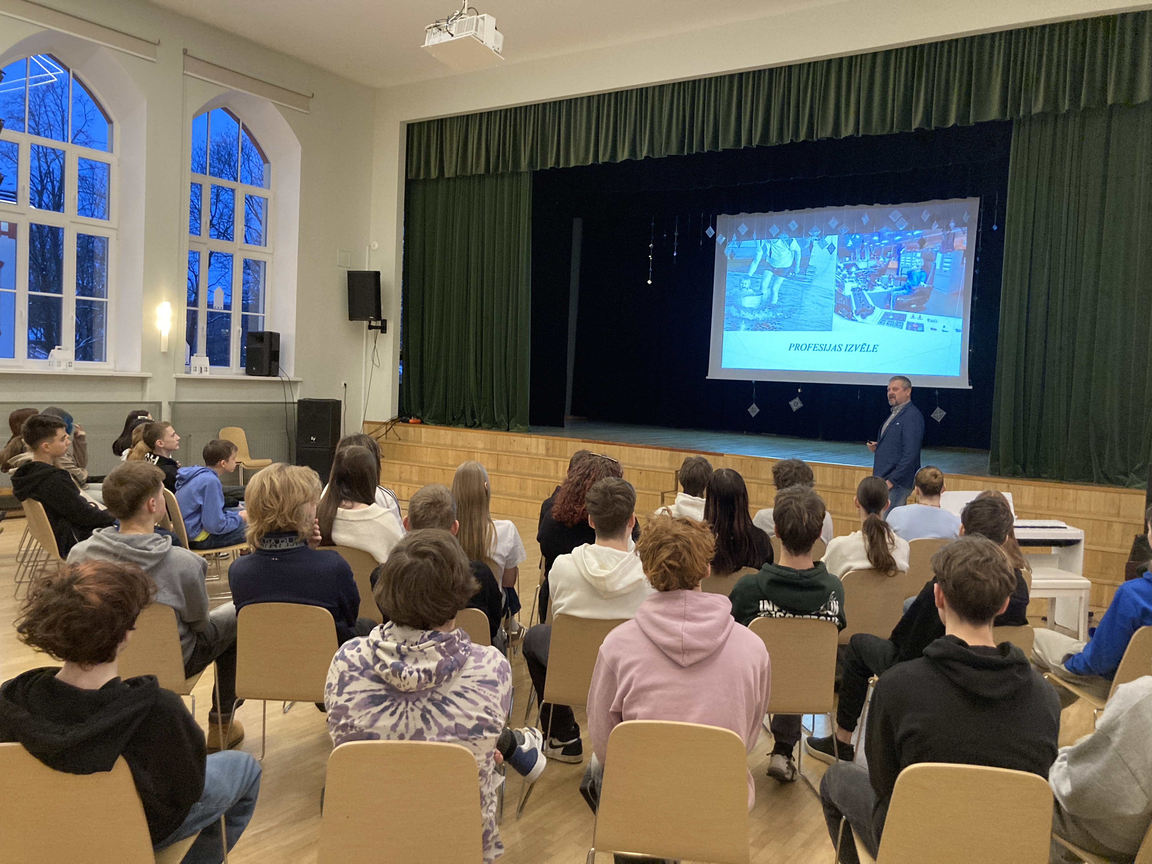 16. janvārī skolā pie 8.a, 8.b un 9.klases skolēniem viesojās kuģa kapteinis Kristaps Rapša.