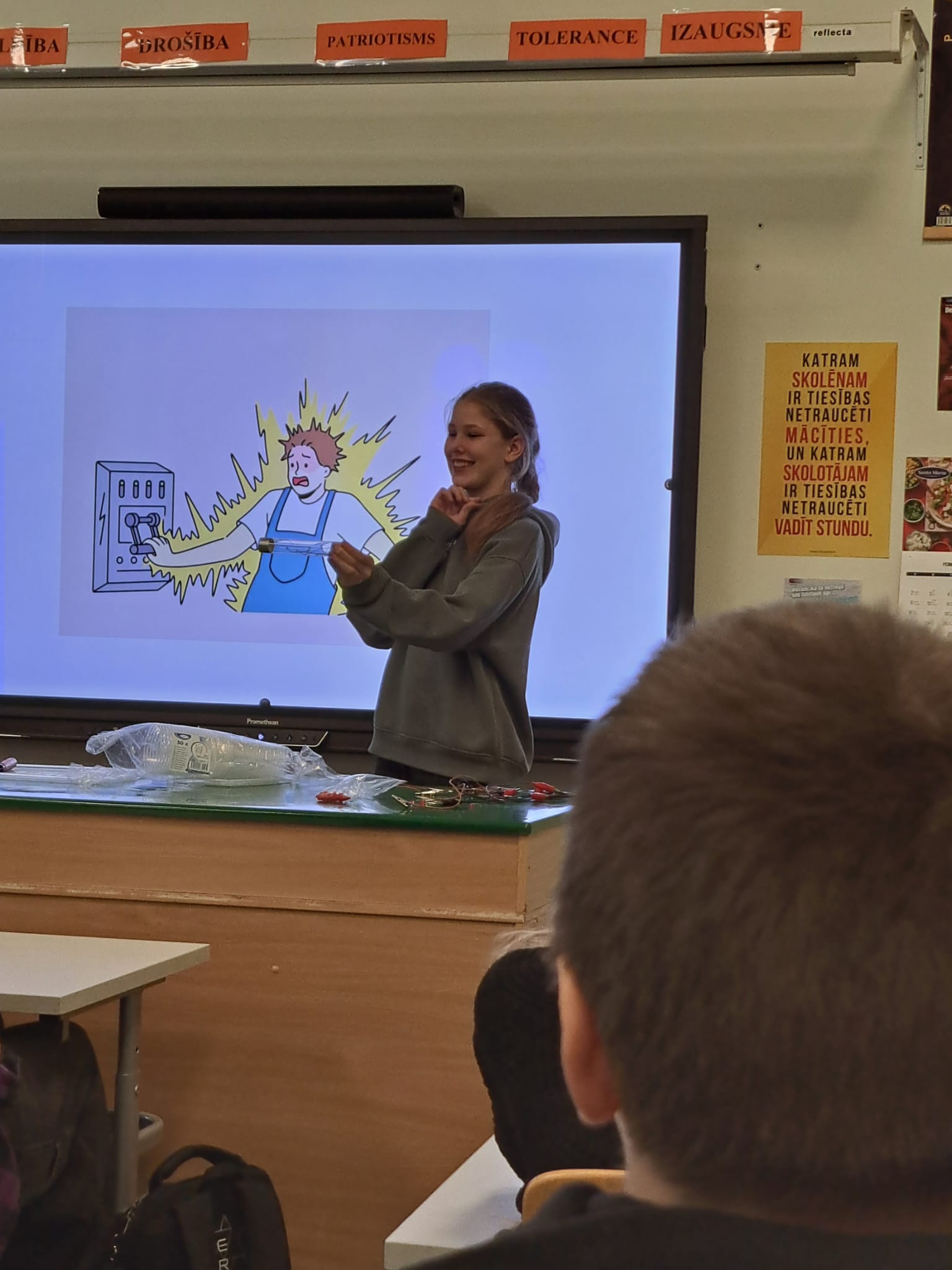 Skolēniem ar eksperimentu palīdzību nostiprināja dabaszinībās iegūtās zināšanas par elektriskajām ķēdēm, elektrības vadītājiem un izolatoriem, kā arī elektrodrošību.